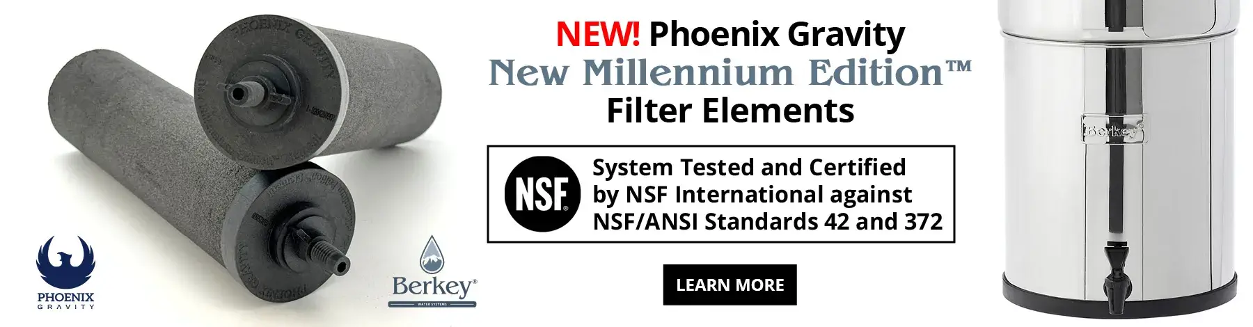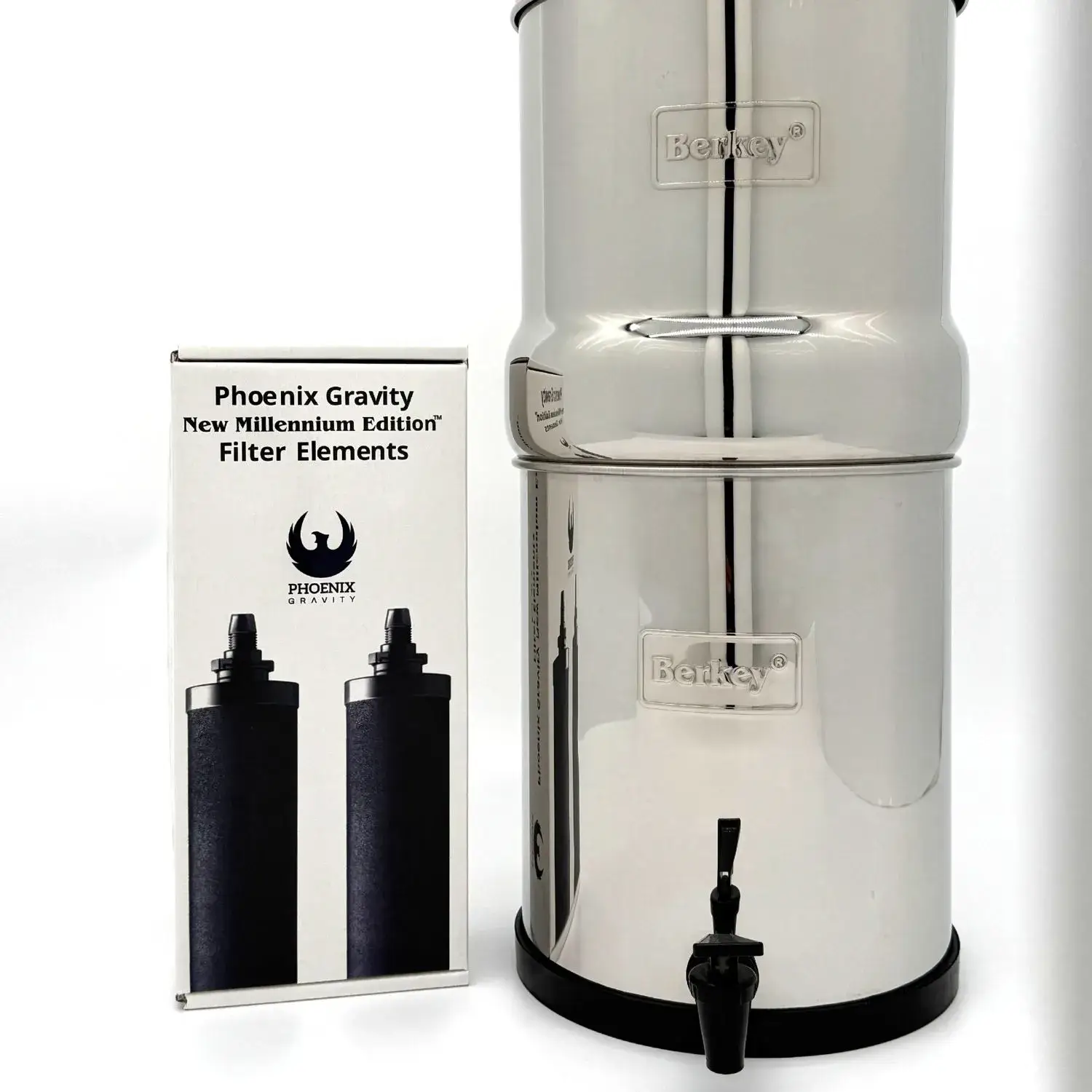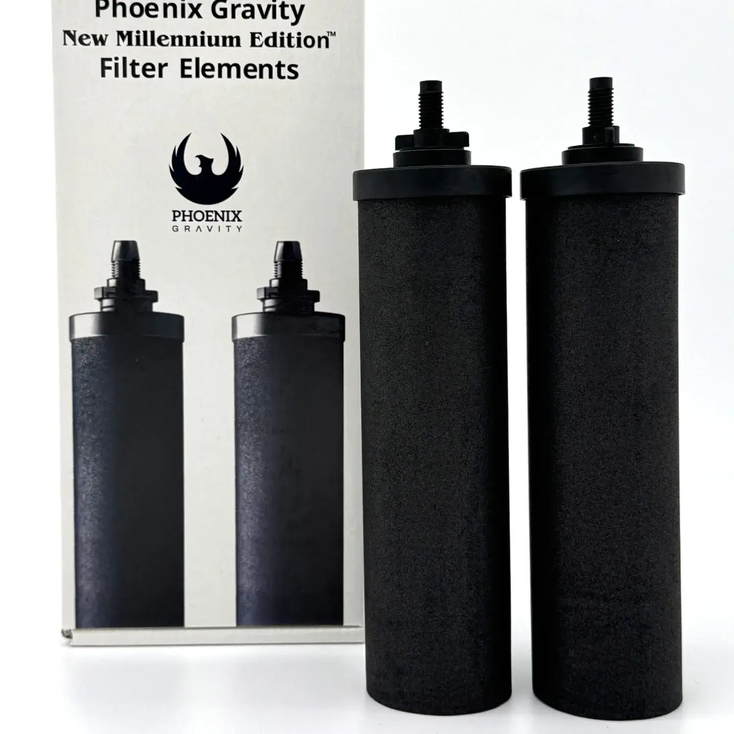 • Phoenix Gravity New Millennium Edition Filter Elements are manufactured for New Millennium Concepts, Ltd., as economical replacement filters in lieu of Black Berkey® Elements for use in Berkey gravity-fed water filter systems and other brands of gravity-fed water filter systems.