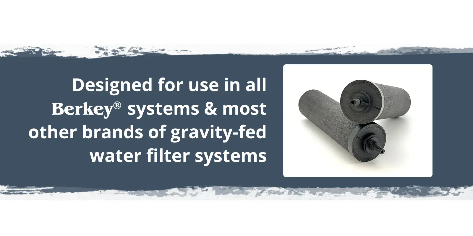 Universal Replacement Filters that are Compatible with All Berkey and Most Other Brands of Gravity-Fed Water Filter Systems.