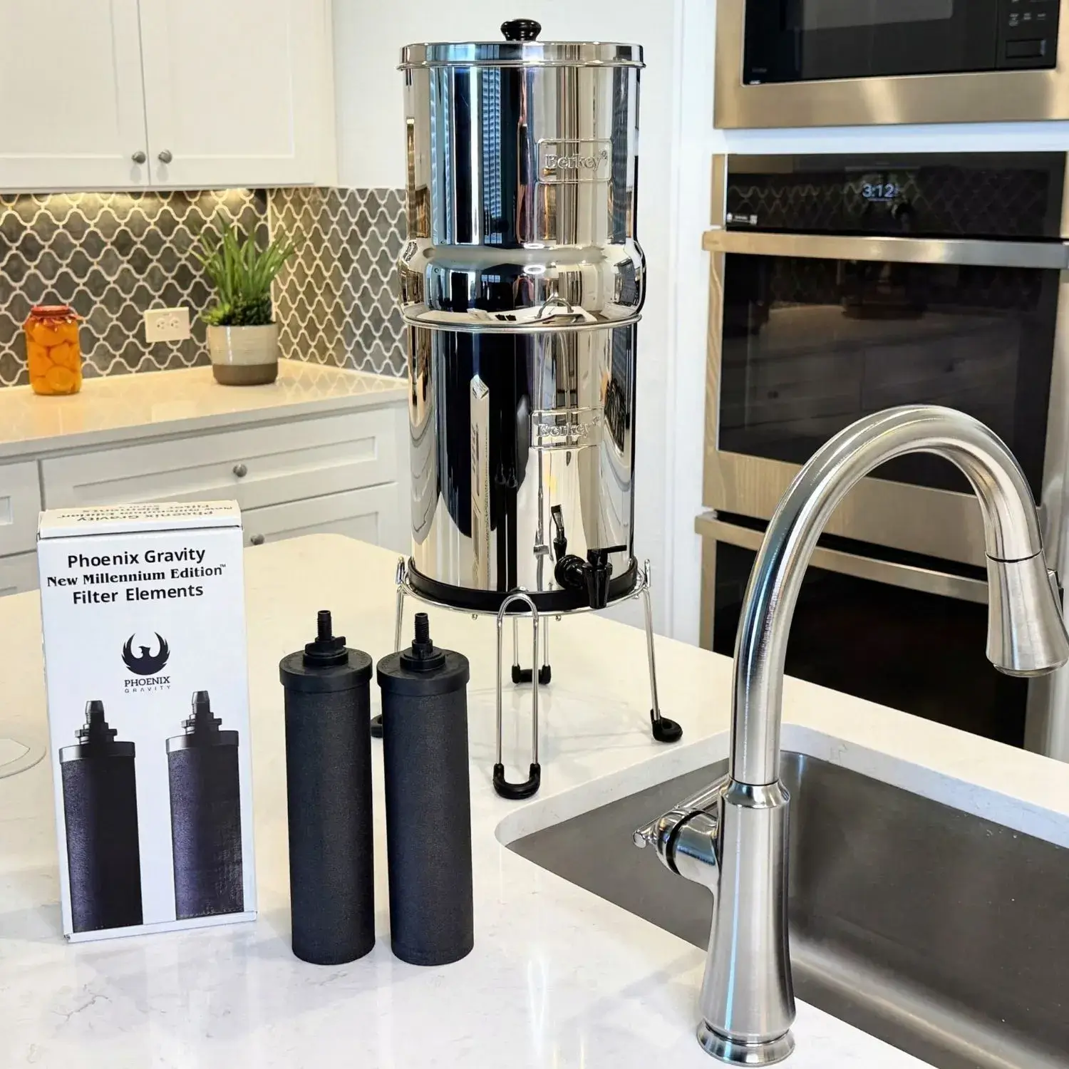 Phoenix Gravity New Millennium Edition Filter Elements are designed to fit all Berkey water systems, including Go Berkey Kit, Travel Berkey, Berkey Light, Big Berkey, Royal Berkey, Imperial Berkey, and Crown Berkey systems, plus most other brands of gravity-fed water filter systems.